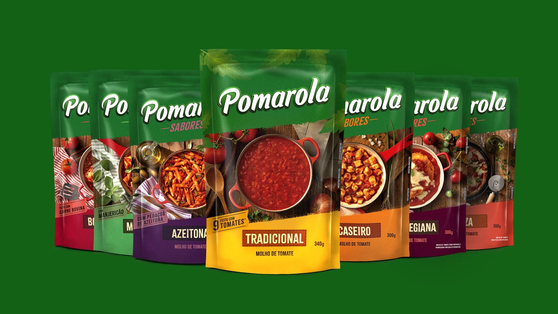 People are experiencing a growing distance from nature. Urban life has separated them from the countryside, from the origins of food, and from the way it is prepared. Pomarola seeks to bridge that gap by bringing a natural, practical, and tasty product from farm to city. At the same time that the brand’s product portfolio was being renewed, we updated the language of one of Brazil’s most popular tomato sauce brands. All product lines received new recipes made without preservatives, with reduced salt, featuring consumers’ preferred seasonings and simple ingredients. These improvements were introduced without compromising the practicality of quick preparation or the pleasure of great flavor. Interbrand developed a new brand platform that unfolded into a renewed verbal and visual language, as well as a redesign of the product portfolio. The new visual identity draws inspiration from the explosion of flavors found in natural ingredients and reinforces the idea that food coming straight from the farm delivers richer sensations, colors, and textures. This concept is expressed through rustic lettering, earthy tones, hand-crafted illustrations, and organic, irregular shapes. The product lines were restructured and organized into three distinct categories: Traditional, Flavors, and Chef. Each one responds to a specific consumption motivation and is represented by an exclusive photographic style that highlights the natural details of the ingredients and the appeal of the final dish. The Traditional line offers practicality for everyday meals. The Flavors line features ready-made recipes, ranging from basil to Bolognese. The Chef line, composed of premium products and carefully selected ingredients, is designed for special occasions and deeper engagement with cooking.